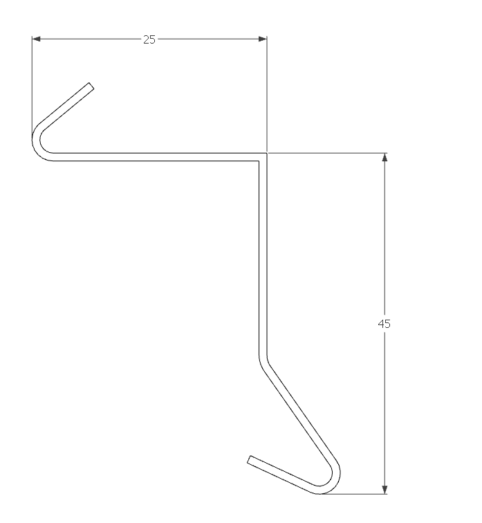 Løskant 45x25x1000 mm. i 0,6 mm. aluminium.